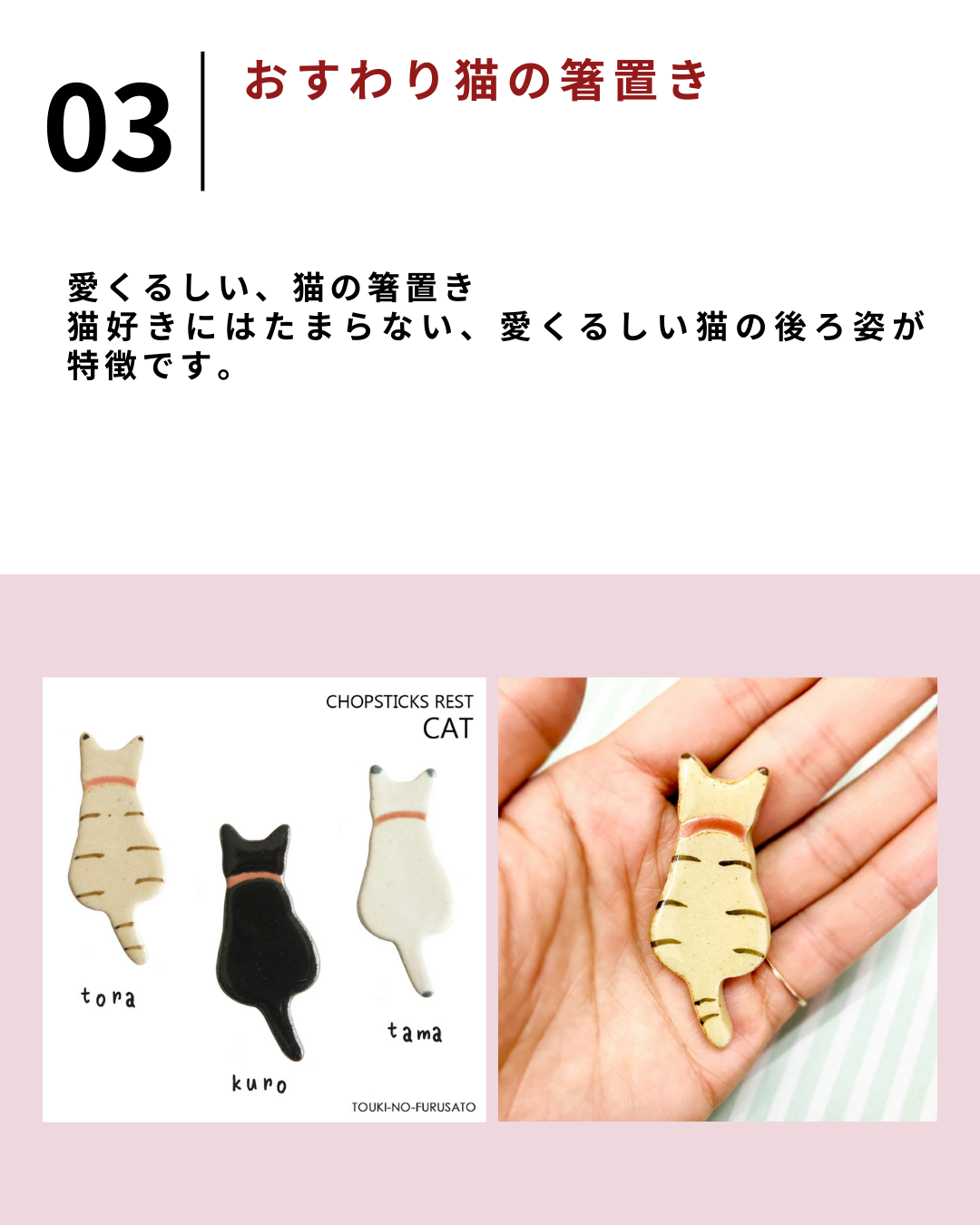 2026.3.19 【保存版】楽天で買えるおすすめ猫グッズ5選【#PR】 送料無料 箸置き はしおき カトラリーレスト 単品 はし置き テーブル小物 箸休め 箸枕 食器 卓上小物 陶器 猫デザイン かわいい 和風 ほっこり キャット 三毛猫 ネコ キュート おしゃれ インテリア小物 テーブル小物 プレゼント 贈り物 白 黒 茶価格:498円(税込、送料無料) (2026/3/19時点) 楽天で購入 【選べる7種類】 錫製 猫のお箸置き 【メール便可】 ネコ 金属 箸置き かわいい cat 日本製 手作り アトリエY 単品価格:1,650円(税込、送料別) (2026/3/19時点) 楽天で購入 【メール便OK!】おすわり猫の箸置き タマ・クロ・トラ 猫の後ろ姿 箸おき 陶器 はしおき 白猫 黒猫 クロネコ 虎ネコ 寅猫 シマネコ cat 猫好き インスタ映え おもしろ ユニーク かわいい 癒し キャット プチギフト メール便OK 陶器のふる里 trysケ価格:660円(税込、送料別) (2026/3/19時点) 楽天で購入 アルミ カトラリーレスト キャット箸置き はしおき カトラリーレスト アルミ はし置き おしゃれ フォークレスト 食卓小物 キッチン雑貨 食器価格:660円(税込、送料別) (2026/3/19時点) 楽天で購入 日本猫箸置き ばら売り 送料無料 かわいい キャット 陶器 はしおき キッチン プレゼント ギフト カトラリー ねこ おしゃれ キュート価格:587円(税込、送料別) (2026/3/19時点) 楽天で購入