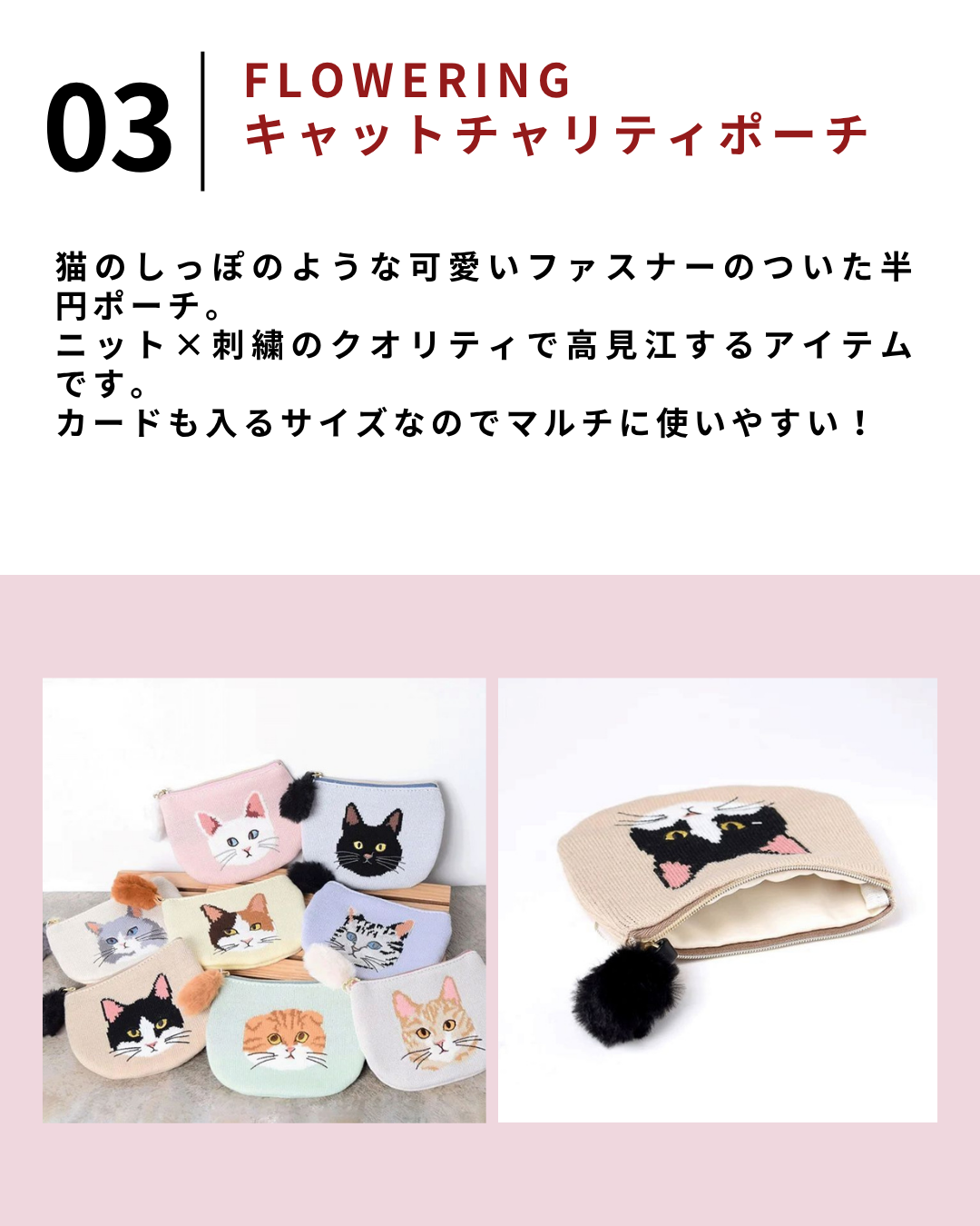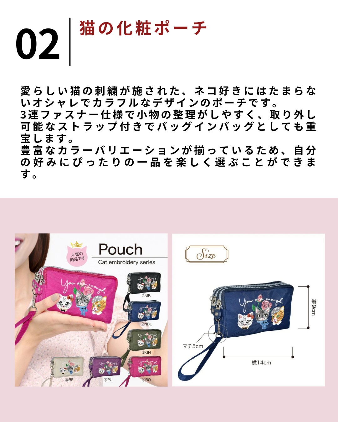 2026.4.17 【保存版】楽天で買えるおすすめ猫グッズ5選【#PR】 フラワーリング FLOWERING ネコ柄 猫の表情がかわいい マチ付きポーチ メイクポーチ 薬入れ くすみカラー 旅行 グレー アイボリー GPO0307価格:1,980円(税込、送料別) (2026/4/17時点) 楽天で購入 【10%OFFクーポン!2個以上ご購入で】 猫 ポーチ 化粧ポーチ メイクポーチ 小物入れ 大容量 コスメポーチ コスメ収納 ねこ 猫柄 ネコ 猫 ねこ ポーチ 旅行 トラベル 便利グッズ トラベルポーチ 3ポケット カジュアルポーチ 送料無料価格:1,510円(税込、送料無料) (2026/4/17時点) 楽天で購入 【送料無料】キャットチャリティポーチ 株式会社フラワーリング 全8柄(半円ポーチ ニット 刺繍 小物入れ かわいい ねこ 猫 ネコ コインケース 小銭入れ)【メール便対応】※送料込価格価格:2,120円~(税込、送料無料) (2026/4/17時点) 楽天で購入 ポーチ チャリティ 猫 刺繍 キャット ネコ フラットポーチ ミニ おしゃれ 小さめ 薄型 小物入れ お薬ポーチ 小銭入れ サニタリーポーチ かわいい 雑貨 コインケース アクセサリー 募金 ねこ カラビナ 猫の日価格:1,980円(税込、送料無料) (2026/4/17時点) 楽天で購入 メイクポーチ ワイヤーポーチ がま口 猫 かわいい ねこ グッズ コスメポーチ 化粧 使いやすい 収納 整理 小物入れ レディース 機能的 自立 ギフト プレゼント ノアファミリー 母の日 猫好き 猫の日 2025 グッズ 雑貨 クリスマス プレゼント バッグ ギフト 女性 男性 子供価格:2,310円(税込、送料別) (2026/4/17時点) 楽天で購入