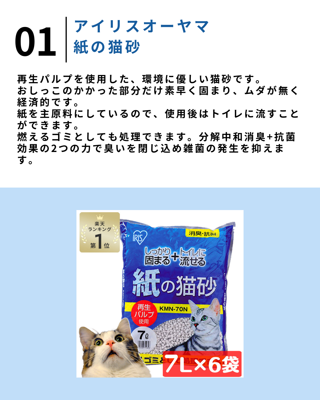 2026.3.19 【保存版】楽天で買えるおすすめ猫グッズ5選【#PR】 猫砂 紙 猫 流せる 猫 トイレ 砂 紙の猫砂 7L×6袋セット KMN-70N送料無料 猫砂 流せる 固まる 紙 猫砂 紙製 消臭 砂 猫砂 ネコ砂 ねこ砂 固まる 燃やせる トイレに流せる まとめ買い 猫砂 アイリスオーヤマ[2603SE]価格:3,680円(税込、送料無料) (2026/3/19時点) 楽天で購入 猫砂 木質ペレット 33リットル〜 猫砂ペレット 送料無料価格:2,000円~(税込、送料無料) (2026/3/19時点) 楽天で購入 [店内買い回りで最大P10倍!20日20時〜]猫砂 消臭 脱臭 炭の猫砂 7L×4袋セット 猫砂 燃やせる 炭 7L 4個 アイリスオーヤマ 燃える 木質 木 ベントナイト ネコ砂 キャット 猫 トイレ 砂 燃えるゴミ 固まる SNS-70 まとめ買い価格:2,780円(税込、送料無料) (2026/3/19時点) 楽天で購入 ポイント最大10倍!3/20 20:00〜3/26 01:59まで 今だけ!特別価格|猫砂 国産 流せる おからでつくったねこ砂 6L×8袋 1ケース お一人様1ケースまで 猫用【国産】[トイレ用品] 流せる 消臭 固まる 植物系 送料無料価格:4,880円(税込、送料無料) (2026/3/19時点) 楽天で購入 猫砂 おから 流せる 緑茶 7L 6袋 お茶 お茶の猫砂 7L×6袋セット OCN-70N 静岡県産茶葉配合 ねこ砂 ネコ砂 トイレに流せる 燃えるゴミ おから 香り 抗菌 消臭 7L×6個 まとめ買い 猫トイレ アイリスオーヤマ価格:3,780円(税込、送料無料) (2026/3/19時点) 楽天で購入