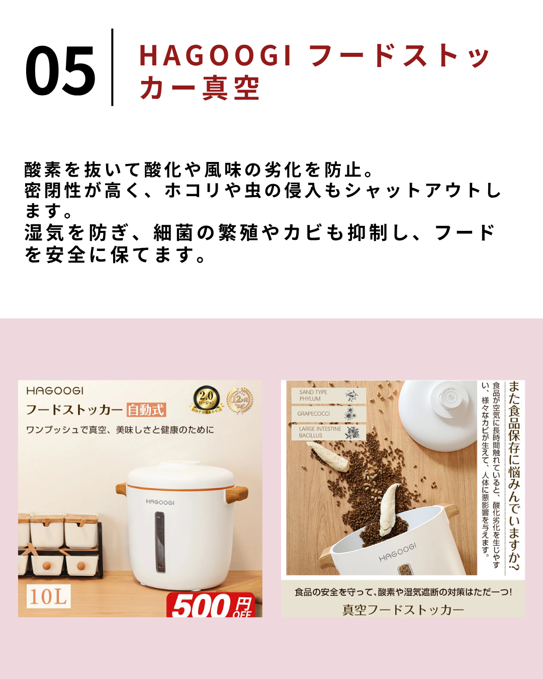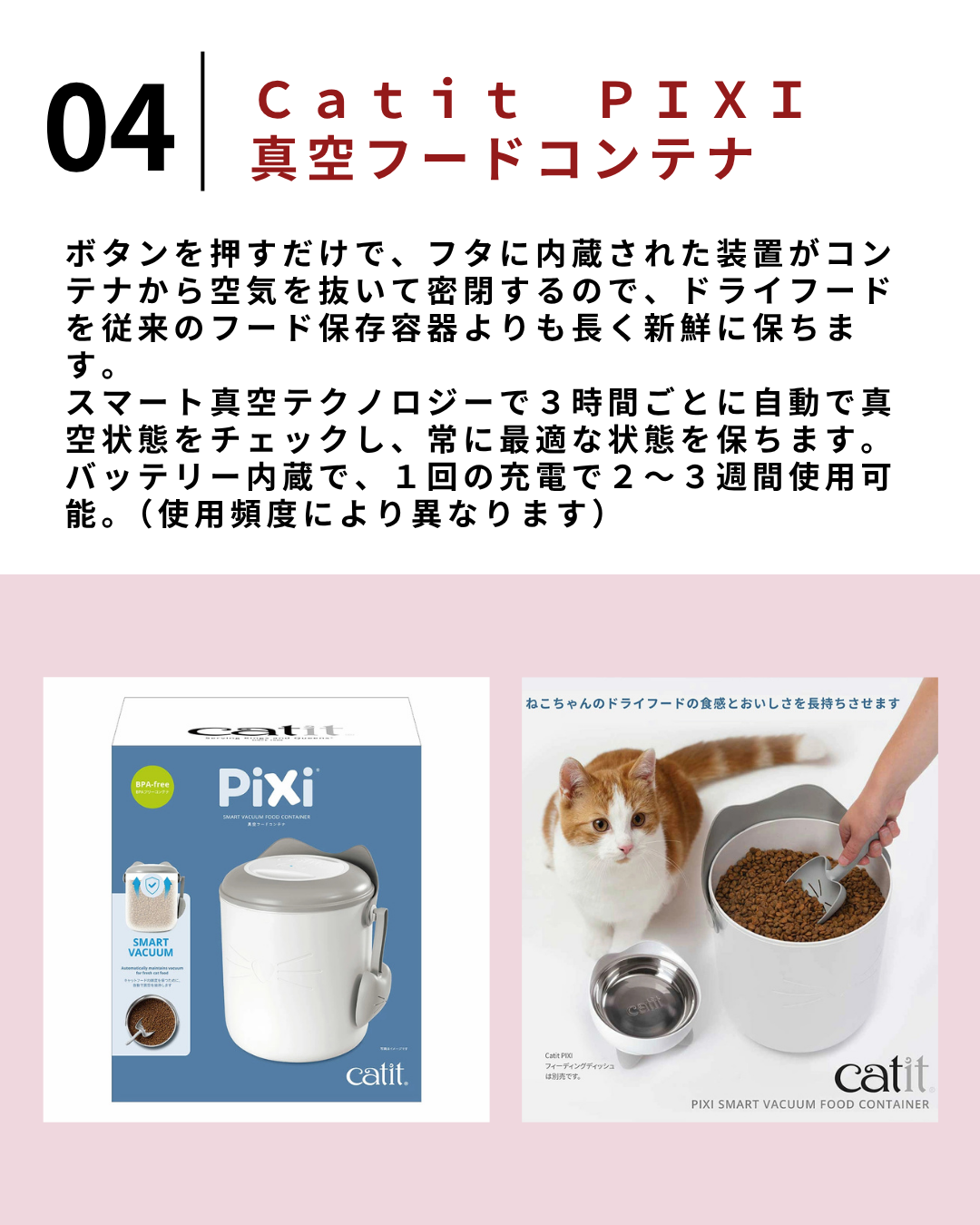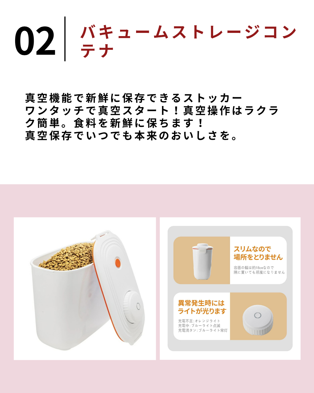 2025.8.1 【保存版】おすすめ真空フードストッカー5選【#PR】 ペットフード ストッカー 真空 自動排気 ペットフード 収納バケツ 犬餌 猫餌 保存容器 真空ストッカー ワンタッチで制御 ドライフードストッカー ペットフード保存容器 大容量 密閉 貯蔵タンク 餌収納 湿気防止 フレッシュロック 飼料保管箱 ペットフードバレル価格:3,380円~(税込、送料無料) (2025/8/1時点) 楽天で購入 エサ入れ 犬 猫 ペットフード ストッカー 真空保存 密閉 <バキュームストレージコンテナ> ドッグフード キャットフード ケース フードケース 保存 ワンタッチ 保管 大容量 猫餌 犬餌 収納 湿気防止 便利【PETKIT ペットキット】価格:12,800円(税込、送料無料) (2025/8/1時点) 楽天で購入 【ポイント5倍】真空保存容器 Bターンエヌシール 2.4L フードストッカー ドライフードの保存に 密封とは違う真空 グレーとベージュ 電池付属品不要(145×145mm×高さ185mm) 帝塚山ハウンドカム ターンシール セミブラック ハーフブラック UVカット価格:8,800円(税込、送料無料) (2025/8/1時点) 楽天で購入 餌入れ フードコンテナ Catit(キャットイット) PIXI 真空フードコンテナ 関東当日便価格:10,800円(税込、送料無料) (2025/8/1時点) 楽天で購入 【楽天連続1位】【雑誌で紹介】HAGOOGI フードストッカー 真空 米びつ 真空保存容器 10L 大容量 ペットフード 梅雨対策 保存密閉容器 キャスター付き 猫餌 犬餌 収納ドライフード パン 粉もの 乾物 酸化防止 しけない USB充電式 おしゃれ 「一年保証」価格:8,980円(税込、送料無料) (2025/8/1時点) 楽天で購入