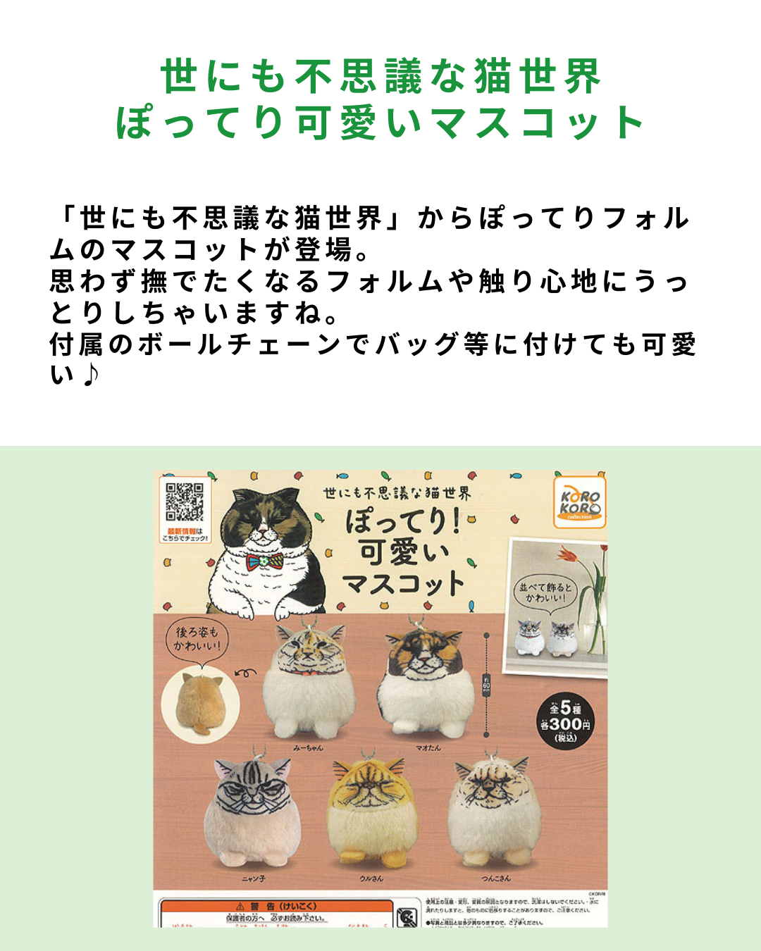 2025.12.10 【保存版】おすすめガチャ 全5種【#PR】 世にも不思議な猫世界 ぽってり 可愛い マスコット 全5種+ディスプレイ台紙セット アイピーフォー ガチャポン ガチャガチャ コンプリート価格:2,070円(税込、送料無料) (2025/12/10時点) 楽天で購入
