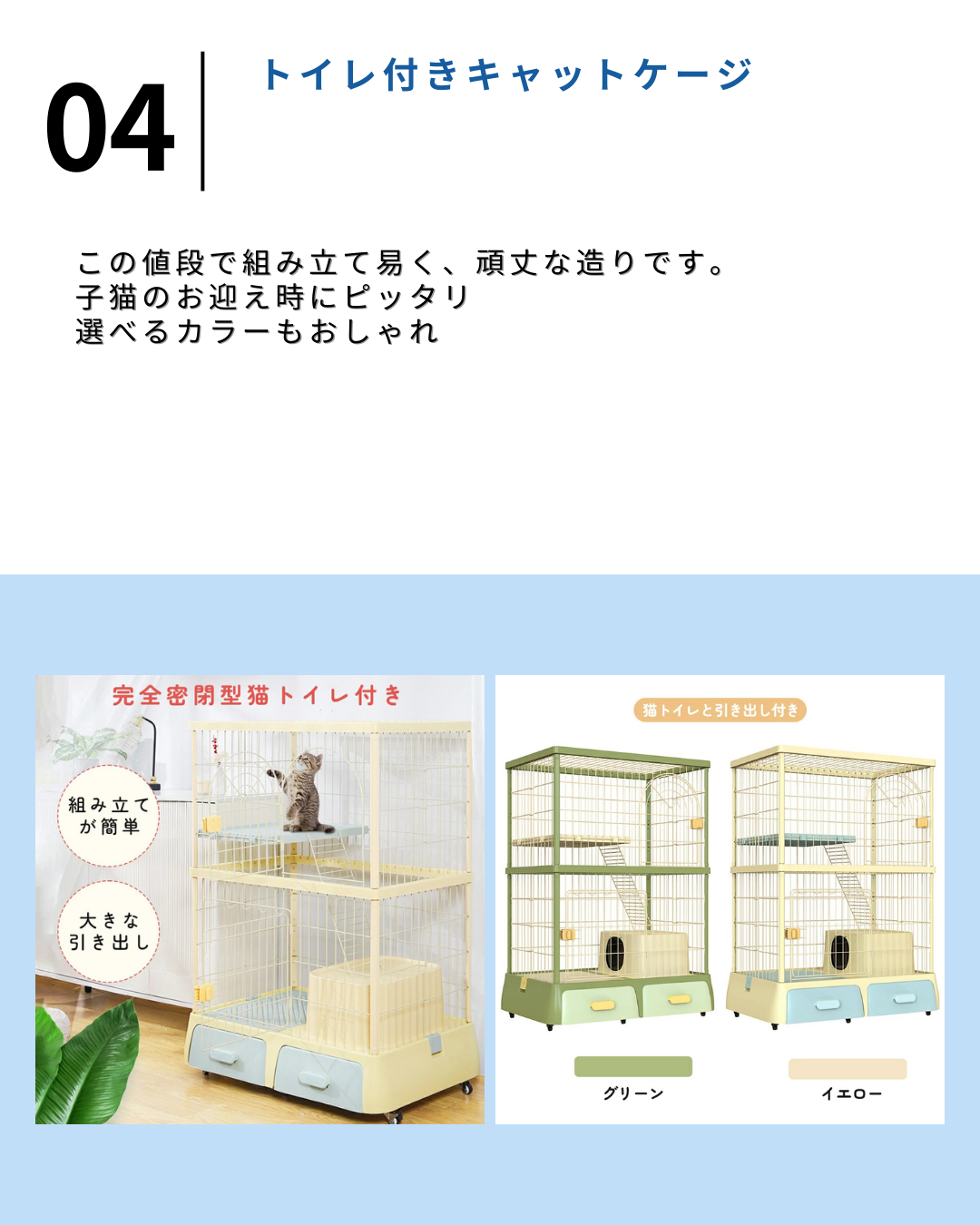 2025.9.2 【保存版】おすすめキャットケージ(1万円以下)5選【#PR】 猫ケージ2段 キャットケージ ケージ コンパクト コンパクトキャットケージ ナチュラル ダークグレー CCC-112 キャットケージ キャットゲージ 猫ケージ ゲージ 猫用ケージ ハウス 室内飼い 猫 ネコ ねこ キャット 猫用 2段[2509SE]価格:8,980円(税込、送料無料) (2025/9/2時点) 楽天で購入 猫 ケージ 大型 3段 2段 多頭飼い スリム おしゃれ 脱走防止 キャットケージ キャットハウス 組立簡単 コンパクト ペットケージ 据え置き 組み立て ゲージ 隠れ家 ペット用品 猫用品 檻 保護 折り畳み式 組立式 仕切り猫用ケージ 収納 多扉 大空間 可愛い ペット部屋価格:7,999円~(税込、送料無料) (2025/9/2時点) 楽天で購入 【本日限定10%OFF】JPJieAnXin 猫 ケージ キャットケージ 大型猫用 ねこ用 3段 76*50.5*133.5cm 2段 76*50.5*89cm プラスチック 鉄 全3色 猫ケージ ステップ付き スリム おしゃれ 組み立て簡単 脱走防止 ペットケージ ミニキャットケージ 猫ゲージ キャットゲージ 多頭飼い価格:6,780円~(税込、送料別) (2025/9/2時点) 楽天で購入 【全品ポイント10倍!】猫 ケージ おしゃれ キャットケージ 2段 大型 スリム 猫 キャスター ハンモック トイレ 収納 多頭飼い 一台3役 トイレ付き ドアロック付き キャスター付 猫 ベビー キャットゲージ キャットタワー 組立簡単価格:7,080円~(税込、送料無料) (2025/9/2時点) 楽天で購入 猫 ケージ ゲージ 2段 3段 アイリスオーヤマ キャットケージ 大型 猫 ゲージ スリム PSCC-752 PSCC-753 省スペース 多頭飼い スリムキャットケージ コンパクト 留守番 保護 子猫 組立 簡単 転倒防止 脱走防止 アイリスオーヤマ価格:9,999円~(税込、送料無料) (2025/9/2時点) 楽天で購入