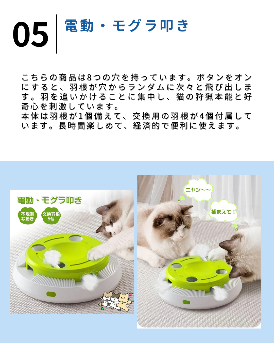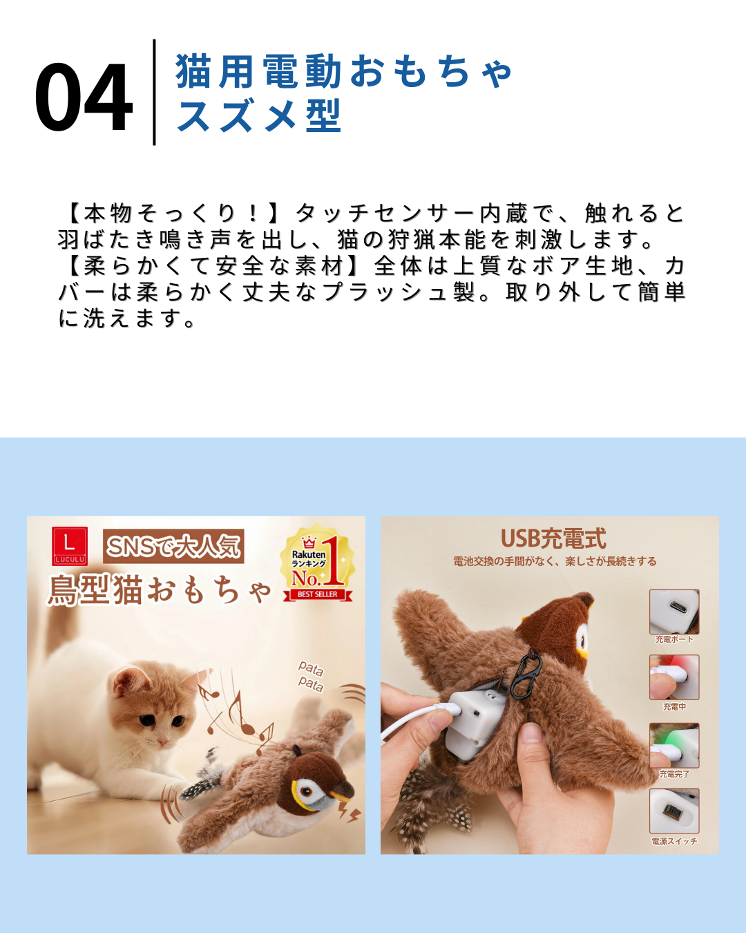 2026.1.14 【保存版】おすすめ猫グッズ5選【#PR】 電動猫じゃらし 猫 おもちゃ 一人遊び 電動 自動 ネコ おもちゃ ねこ 猫じゃらし キャットトイ キャットおもち価格:2,280円~(税込、送料無料) (2026/1/14時点) 楽天で購入 おもち ねこ 鈴 ぐるぐる 猫玩具 遊ぶ盤 回転盤 おもちゃ ネコ ない 飽き おもちゃ ねこ 猫じゃらし 自動 電動 おもちゃ一人遊び価格:3,780円(税込、送料無料) (2026/1/14時点) 楽天で購入 【新春セール】猫 おもちゃ 一人遊び 電動 猫じゃらし ねこ おもちゃ 自動 ネコ おもちゃ 自動回転 猫 玩具 ねこじゃらし 猫遊び 猫用品 ペット用品 電動ぐるぐる 犬猫 猫用 電動おもちゃ ひも 遊べる 運動不足 ストレス解消 電池不要 留守番対策価格:3,380円(税込、送料無料) (2026/1/14時点) 楽天で購入 【楽天1位★最強配送】 猫 おもちゃ 飛ぶ鳥 鳥 自動 羽ばたく翼 ピョンピョンバード 猫 一人遊び 猫が飽きない USB充電式 動く 鳴く 鳥のおもちゃ 電動おもちゃ 猫用おもちゃ 水洗い可能 留守番 暇つぶし 遊ぶ 運動不足解消価格:2,580円(税込、送料無料) (2026/1/14時点) 楽天で購入 \新春セール/猫 おもちゃ 電動 自動 一人遊び モグラたたき 叩き 猫 玩具 ネコ おもちゃ 猫じゃらし 羽 おもちゃ自動 知育 ストレス解消 グッズ ねこじゃらし 遊ぶ盤 回転盤 交換用羽根5枚付 子猫 玩具 留守番 ペット 猫用品 人気 飽きない価格:2,980円(税込、送料無料) (2026/1/14時点) 楽天で購入