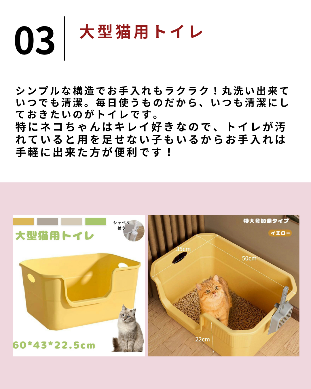 2025.7.23 【保存版】大型猫トイレ5選【#PR】 【再入荷しました!!】 大型 猫トイレ ステンキャットトイレ (猫 ネコ ねこ 大型 大きい カバー 本体 飛散 簡単 飛び散る 深い 洗える 散らかりにくい OFT 猫砂 本体 ペット セット おしゃれ シンプル 高め 大きめ キャット)価格:3,980円~(税込、送料別) (2025/7/23時点) 楽天で購入 \最大P11倍+クーポン配布中/ ONEKOSAMA おねこさま 猫 トイレ 多頭飼 おしゃれ 可愛い スタイリッシュ インテリア エレガント ねこ ネコ ペット 抗菌 頑丈 丈夫 大型サイズ 大型猫 飛び散り 飛散ガード 深め 高め BEAUTY BEAUTY PLUS SQUARE価格:12,100円~(税込、送料無料) (2025/7/23時点) 楽天で購入 期間限定500円クーポン!ねこ 猫トイレ ネコトイレ ねこトイレ 大型 大きめ 深い 深め 高い 高め 飛び散らない 小型 大型 猫 トイレ 四角 におい対策 猫砂 大容量 開放式 飛散防止 飛散ガード ガード 洗いやすい 水洗い 丸洗い お手入れ簡単 多頭飼い 60*43*22.5cm価格:2,580円~(税込、送料無料) (2025/7/23時点) 楽天で購入 猫トイレ 大型 ねこ ネコトイレ ねこトイレ 大きめ 深い 深め 高い 便利 高め 飛び散らない 小型 大型 猫 トイレ 四角 猫砂 大容量 シンプル 開放式 飛散防止 飛散ガード ガード おしゃれ かわいい 水洗い 丸洗い お手入れ簡単 多頭飼い価格:3,780円(税込、送料無料) (2025/7/23時点) 楽天で購入 【サマーセール開催中7/18-7/31】 フレキシブルリッターボックス (スコップ付き) トイレ 猫 ネコ ねこ 大型 大きい 上から 本体 飛散 簡単 飛び散る 深い 洗える OFT 猫砂 ペット シンプル 深め 大きめ キャット グレー ピンク グリーン価格:5,620円(税込、送料別) (2025/7/23時点) 楽天で購入