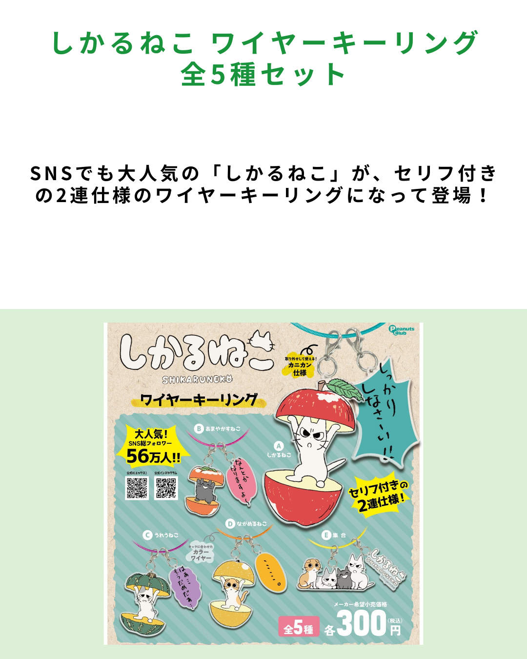 2026.2.23 【保存版】おすすめガチャ 全5種【#PR】 もじゃクッキー しかるねこ ワイヤー キーリング 全5種セット ピーナッツクラブ ガチャポン ガチャガチャ ガシャポン コンプリート価格:1,500円(税込、送料別) (2026/2/23時点) 楽天で購入