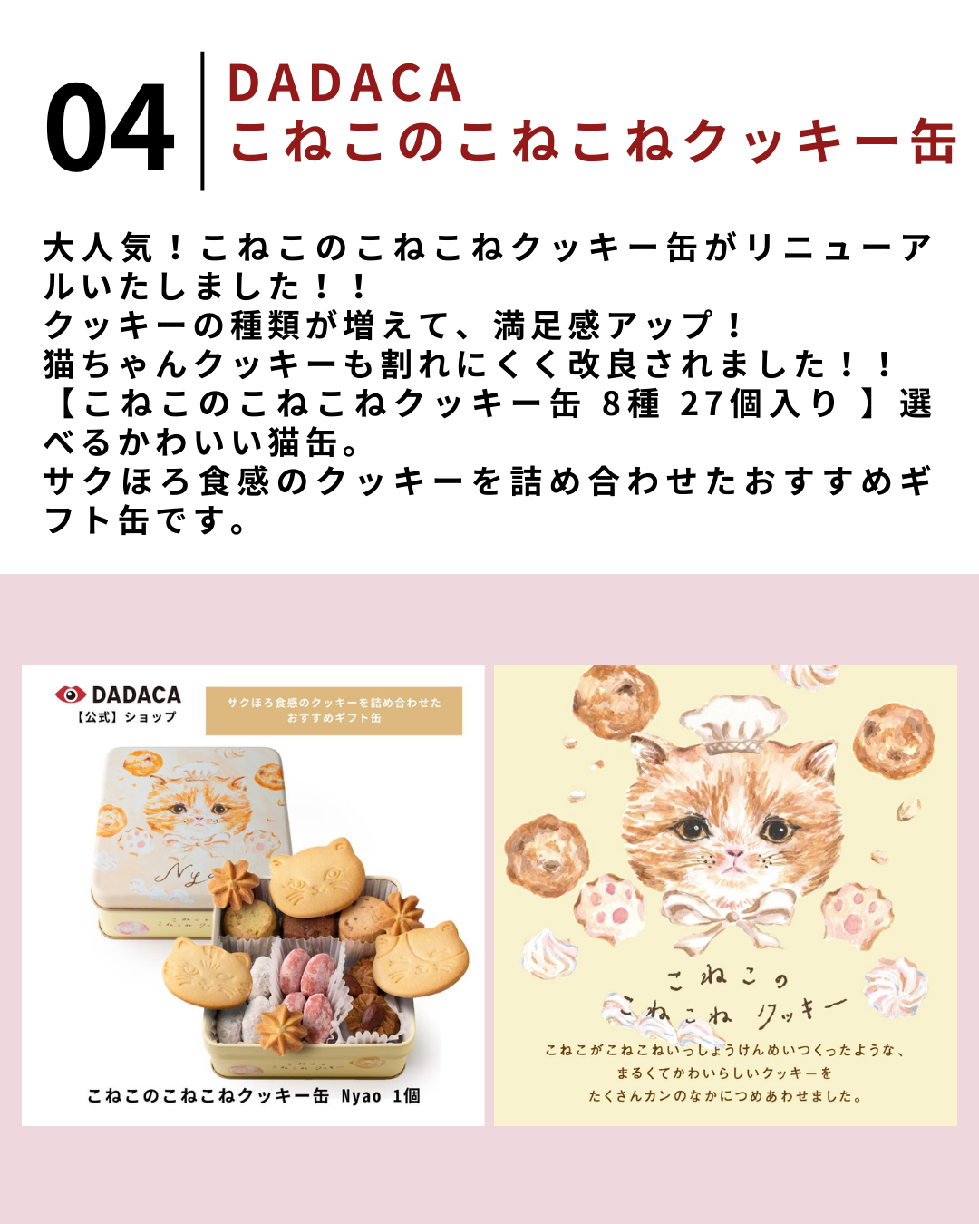 2026.1.22 【保存版】おすすめ猫グッズ5選【#PR】 バレンタインにもおすすめ♪ DADACA公式《CACAOCAT petite缶 mmts》選べる3種 中川翔子さん コラボ BEAMS マミタス バレンタイン ホワイトデー プレゼント 北海道 プレミアム チョコレート お菓子 スイーツ 洋菓子 手土産 猫 ねこ ネコ ご褒美 プチギフト価格:1,188円(税込、送料別) (2026/1/22時点) 楽天で購入 バレンタインにもおすすめ♪ DADACA公式《CACAOCAT ポーチ 6個入 mmts》選べる4種 中川翔子さん コラボ BEAMS マミタス ホワイトデー北海道 チョコレート お菓子 スイーツ ギフト ねこ オシャレ かわいい 猫 ご褒美 プレゼント 黒猫 手土産 お土産 彼氏 彼女 ご褒美価格:1,298円(税込、送料別) (2026/1/22時点) 楽天で購入 バレンタインにもおすすめ♪ 【送料無料】カード付きをご選択可能!のし無料サービス対応 \楽天ランキング1位/北海道産 プレミアムチョコレート 選べる猫缶《CACAOCAT缶14個入 》DADACA 公式 お年賀 年末年始 お土産 お持たせ 冬ギフト 熨斗対応価格:2,980円(税込、送料無料) (2026/1/22時点) 楽天で購入 《期間限定ポイント10倍》バレンタインにもおすすめ♪ 《送料無料》DADACA 公式 【のし・メッセージカード無料】\楽天1位/ DADACA 公式《こねこのこねこねクッキー缶 8種 27個入り 》選べるかわいい猫缶 スイーツ 洋菓子 猫 北海道 お年賀 季節のご挨拶価格:2,980円(税込、送料無料) (2026/1/22時点) 楽天で購入 【A配送】テオブロマ じゃり ギフト 洋菓子 詰め合わせ 贈り物 プレゼント チョコレート お菓子 手土産 お土産 ギフト お礼 お返し おしゃれ かわいい イラスト 猫 土屋公二 プチギフト ホワイトデー お配り 常温 ねこスイーツ バレンタイン価格:2,790円~(税込、送料無料) (2026/1/22時点) 楽天で購入