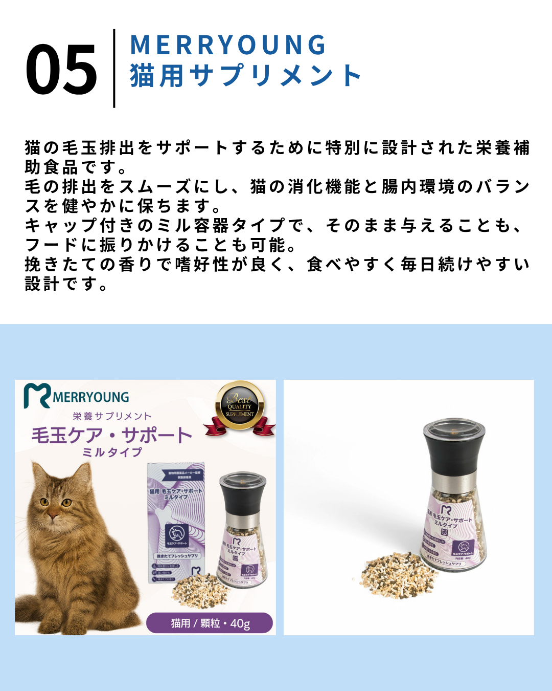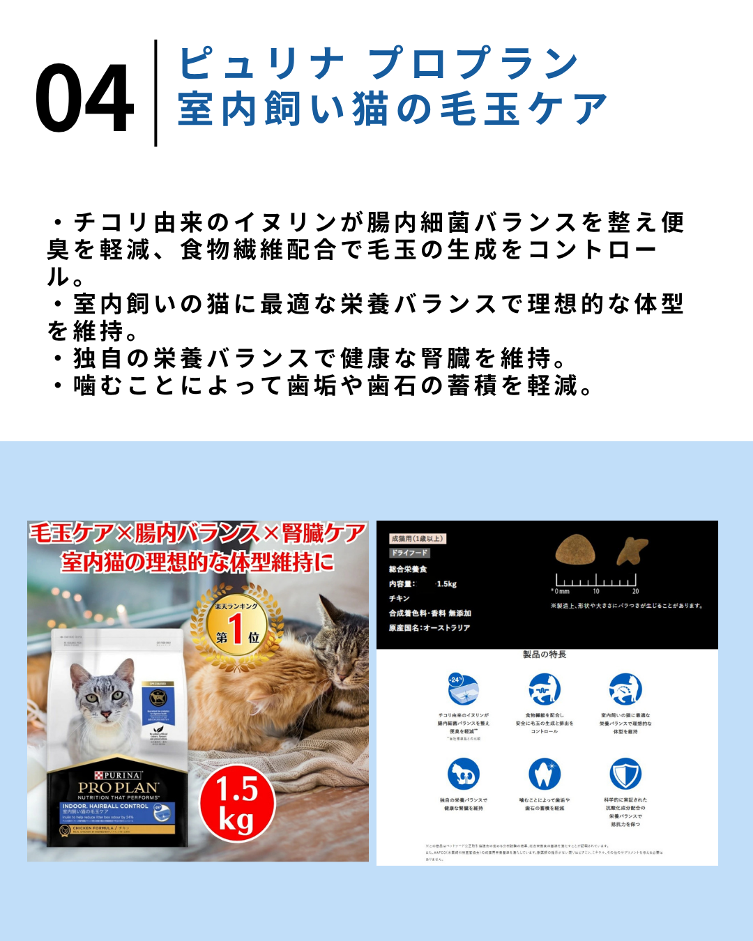 2026.4.7 【保存版】楽天で買えるおすすめ猫グッズ5選【#PR】 Greenies 猫用グリニーズ 毛玉ケア チキン味 ツナ味 90g セット キャットフード 猫 おやつ スナック 毛玉 排泄価格:1,340円(税込、送料無料) (2026/4/7時点) 楽天で購入 猫の毛玉取り スッキリン(50g)価格:865円(税込、送料別) (2026/4/7時点) 楽天で購入 ねこ元気 おいしさバランス 毛玉ケア成猫用まぐろ・チキン・野菜入り価格:988円(税込、送料別) (2026/4/7時点) 楽天で購入 【楽天1位!】 ピュリナ プロプラン 成猫用キャットフード 室内飼い猫の毛玉ケア チキン 1.5kg 1歳以上 キャットフード 猫 ドライフード 総合栄養食 合成着色料・香料 無添加 ねこ ネコ 室内猫 フード 消臭 腸内環境 便臭 軽減 食物繊維体型維持 健康維持価格:3,630円(税込、送料無料) (2026/4/7時点) 楽天で購入 【 猫用 サプリメント 】 MERRYOUNG メリーヤン 猫用サプリ 毛玉ケアサポート 50g サプリ 毛玉対策 猫のサプリメント 猫 毛玉ケア ねこ ネコ ふりかけ ペットサプリ 栄養補助食品 吐き戻し軽減 高品質 猫用サプリメント 子猫 成猫 シニア猫 ねこふりかけ 台湾製 獣医師推奨価格:2,480円(税込、送料別) (2026/4/7時点) 楽天で購入
